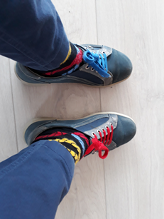 En ik eindig met een foto van mijn schoenen. Ik doe vaak verschillende veters in mijn schoenen en ik vind het grappig om te merken dat mensen het helemaal niet zien of het meteen zien. Dan heb je ook weer een contactmoment.